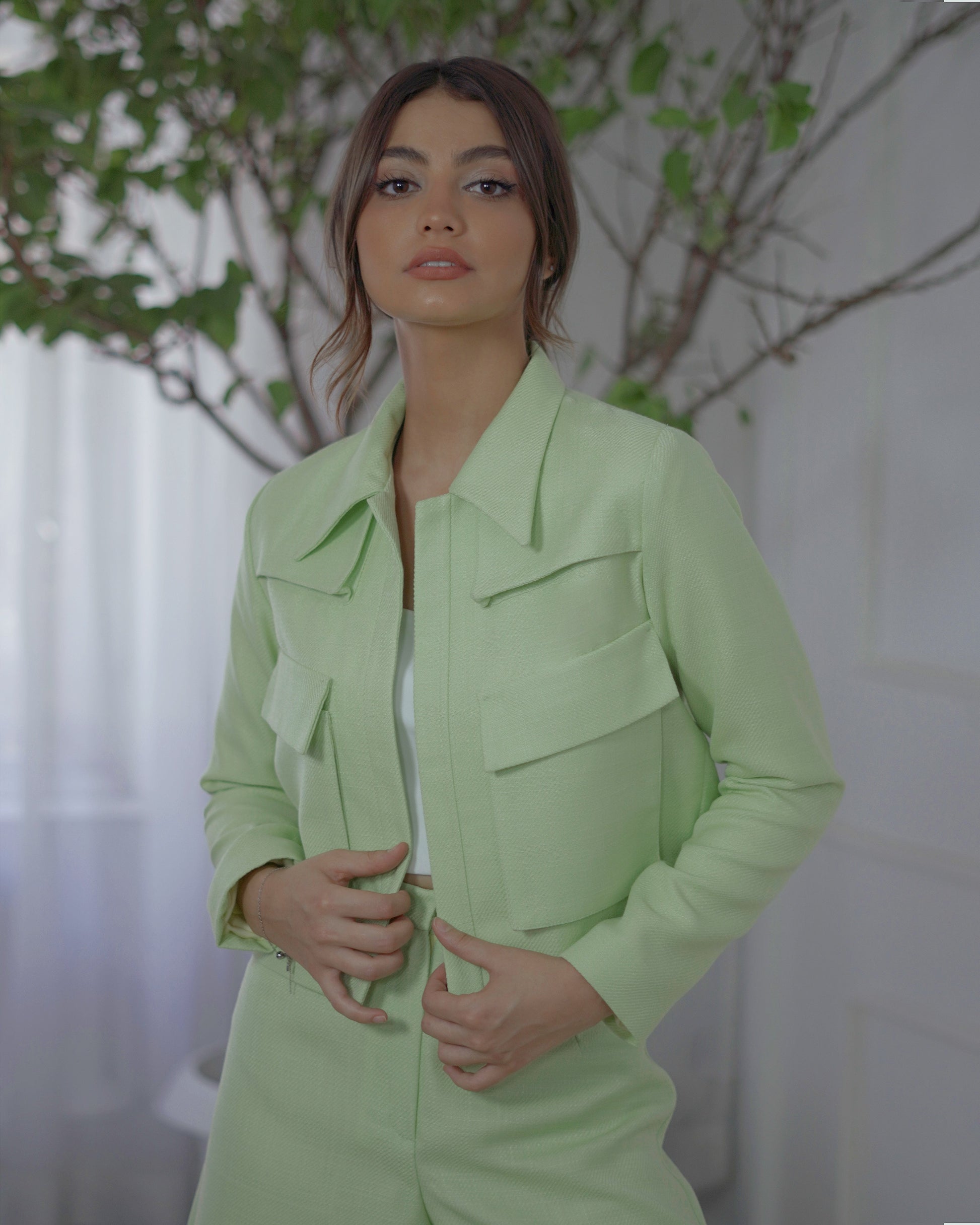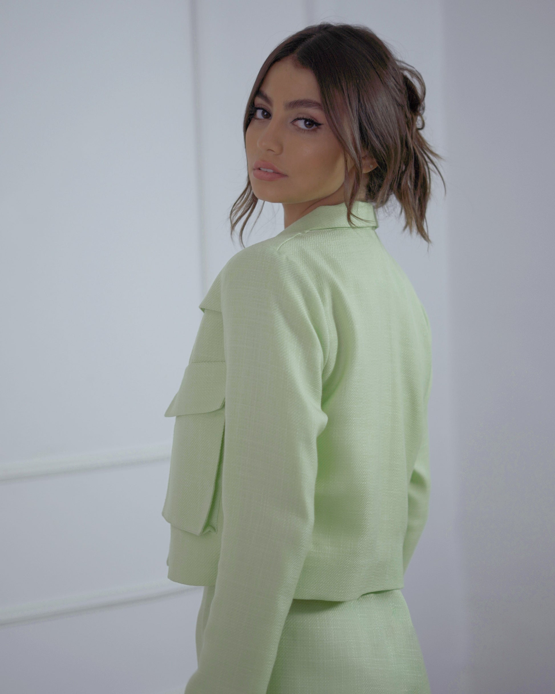 Light Green Suit set _casual chic with a Fresh ,Modern twist . Freshness to your wardrobe with this vibrant light green suit set.the tailored jacket features clean lines and practical pockets ,adding structure and style to your look.paired with matching shorts ,the perfect balance between chic and casual.